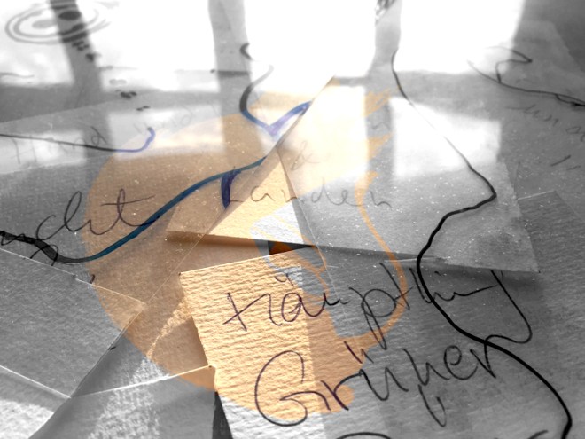 Gestern gingen wir auf Spurensuche, -findung und -legung mittels des Graphitstifts. Im Dialog konnten die Spuren nachgezeichnet, verstärkt, neu gesetzt und wieder aufgelöst werden.