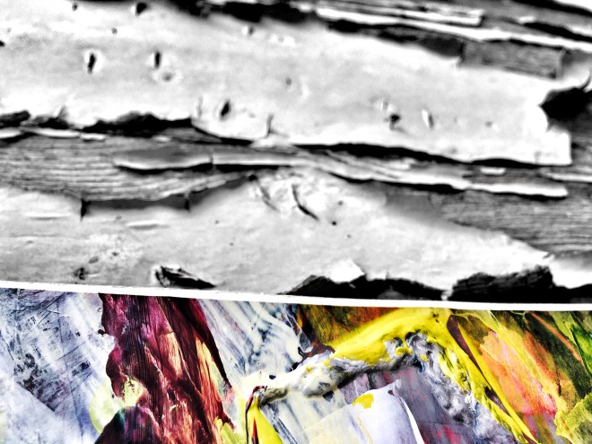 Heutiger Sonntagmorgen im Wechselspiel von Sonne und Regen … im künstlerischen Prozess mit Acrylfarbe, schwarzer Tinte, Transpartentpapier und Holzfunieren. Wohin führt mich die Sehnsucht? Was möchte gelebt werden?